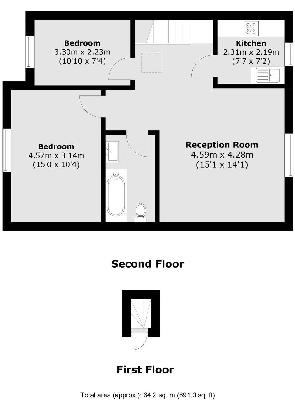 A refurbished two double bedroom apartment on the top floor of a period conversion in Alma Square. Spacious reception room, refurbished separate kitchen and two good size double bedrooms. Residents have access to a well maintained communal garden.