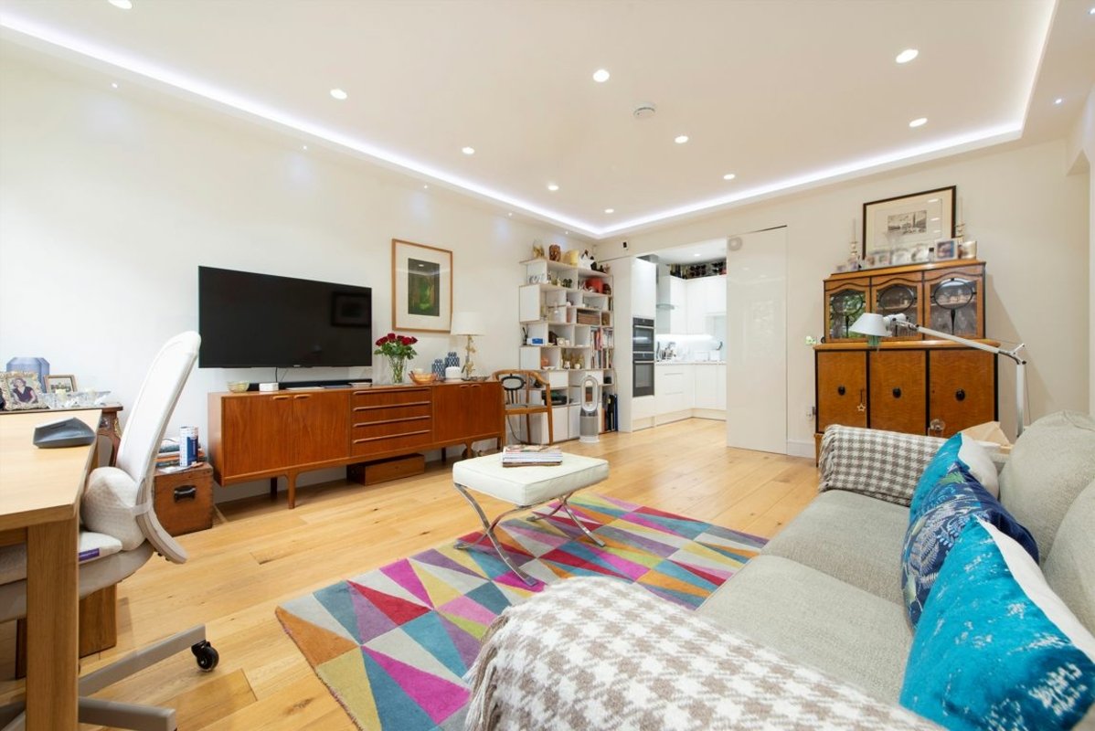 A beautifully presented two-bedroom mews house in the sought-after Eton Garages, Belsize Park.