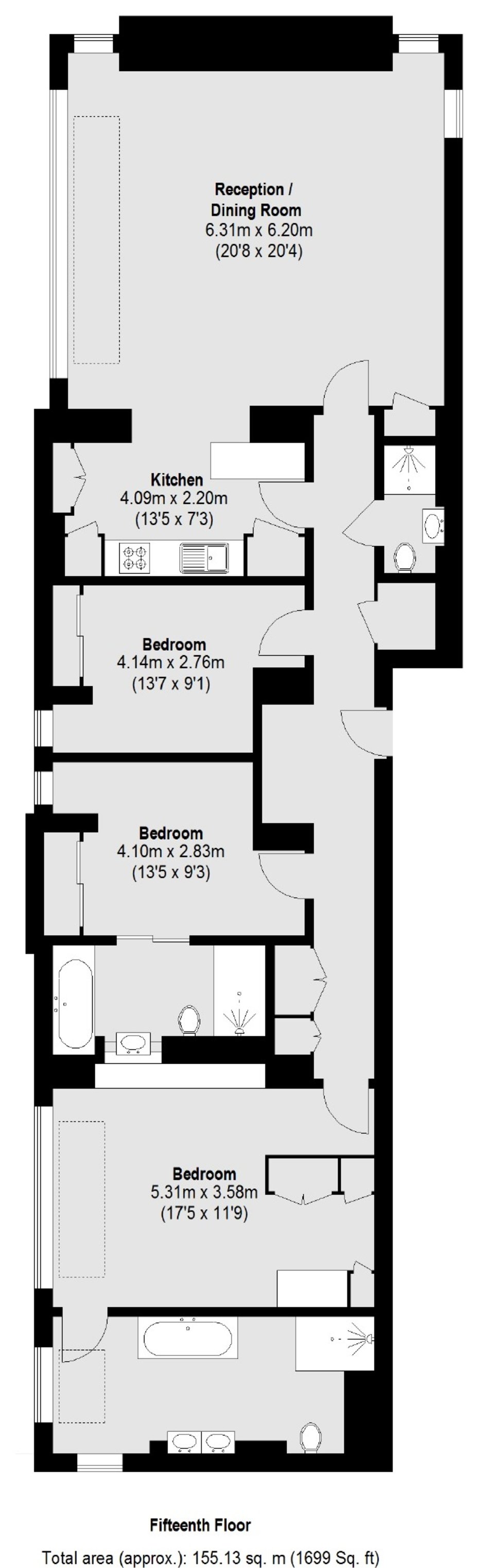 A stunning apartment in Blake Tower boasting uninterrupted views of the City's skyline. In the heart of the apartment is a west facing reception room with a well positioned open kitchen . There are three good sized bedrooms with the main bedroom boasting an impressive en-suite. The property has been tastefully renovated and is presented in excellent condition.