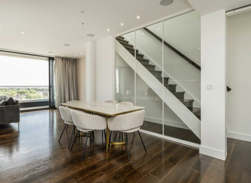 A superb modern top floor duplex apartment set over the top two floors of an imposing purpose built development moments to Swiss Cottage station, with a private roof terrace offering one-of-a-kind 360 degree panorama of the London Skyline.