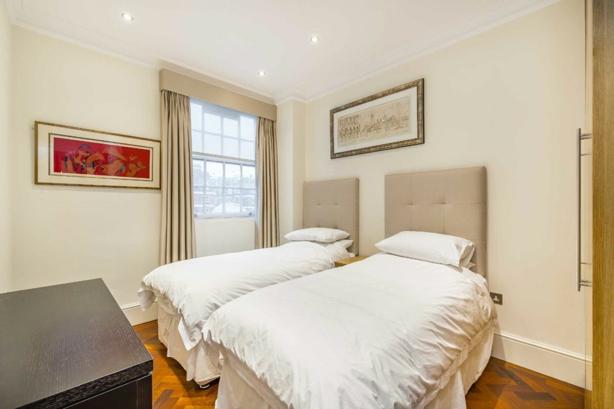 This bright and spacious lateral apartment is situated on the second floor of a period building with lift and porter located on this prestigious Mayfair Square. The apartment is newly redecorated and benefits from air conditioning, 24hr porter, spacious open-plan reception room and wooden flooring throughout.