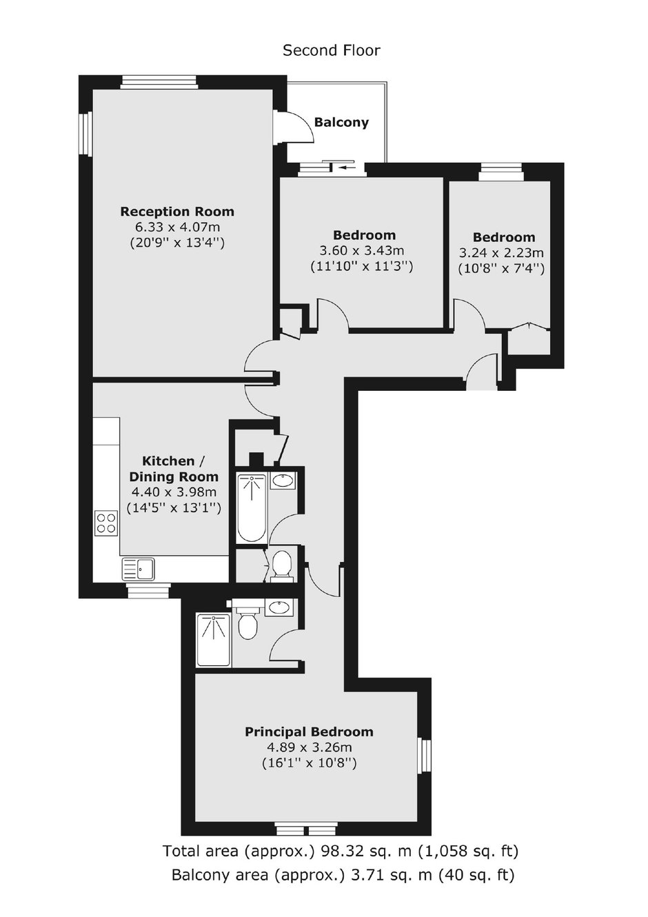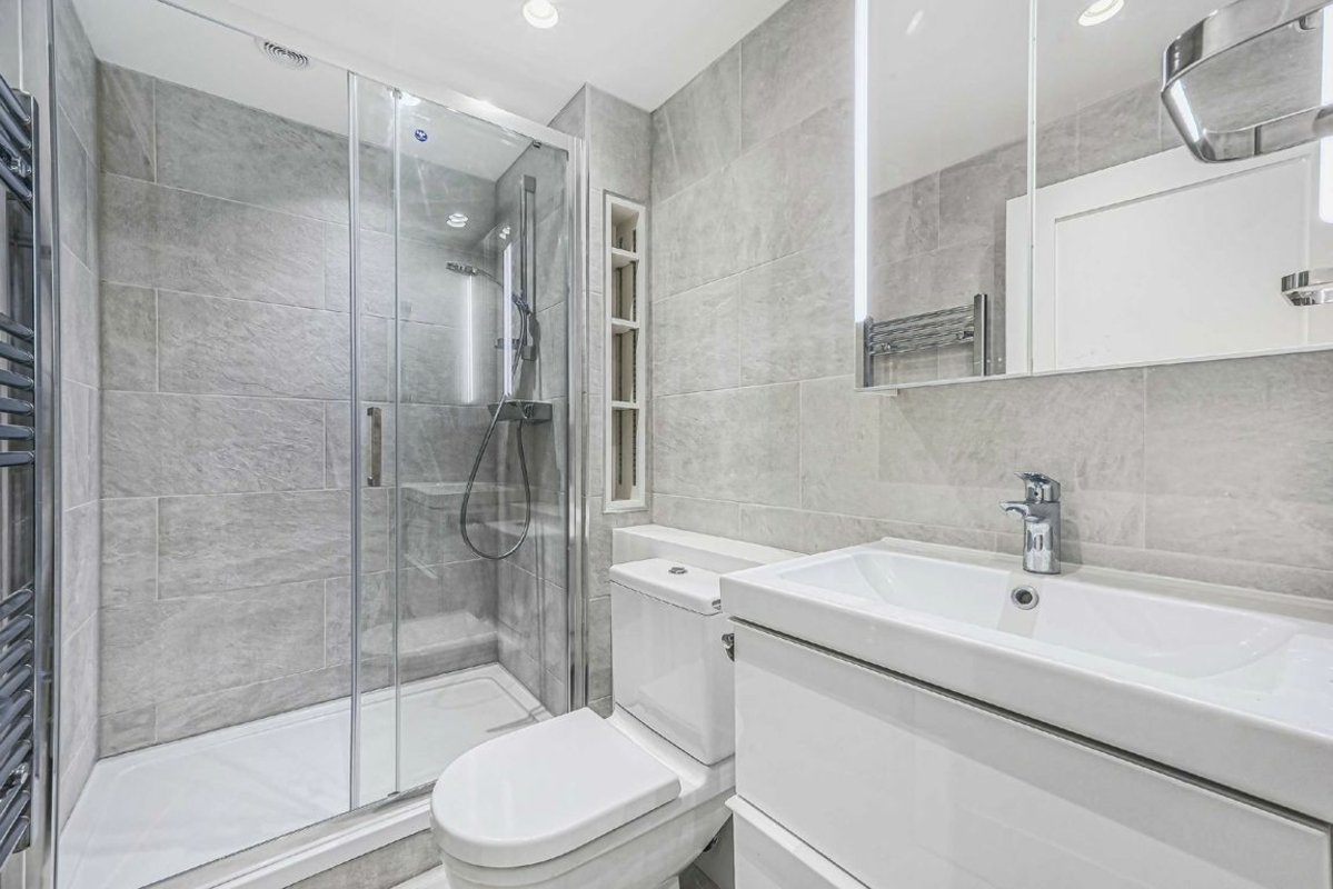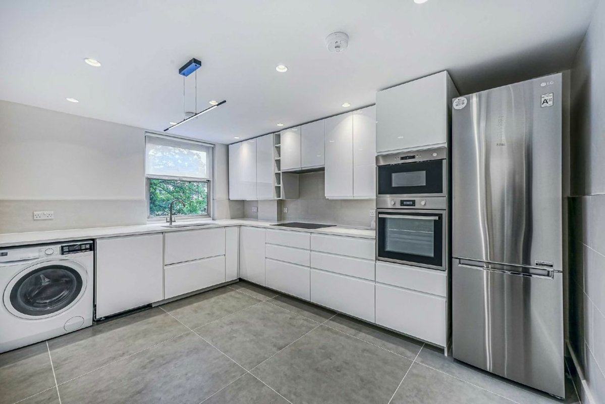 A recently refurbished three double bedroom flat with two bathrooms located on the second floor of a purpose build block with lift. Wooden floors throughout, separate eat-in kitchen, balcony and access to communal gardens.