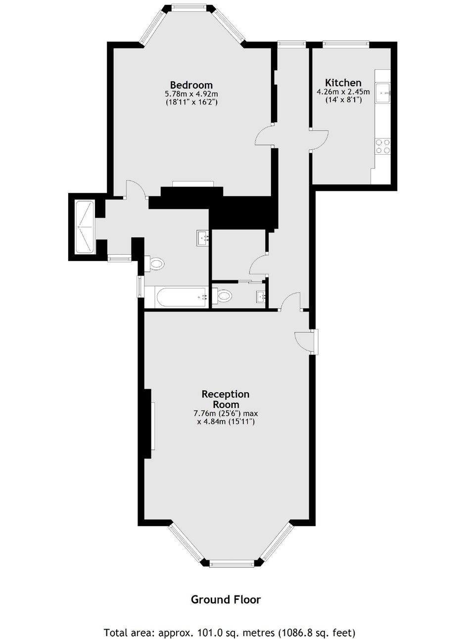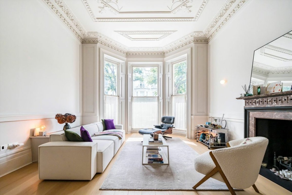 An immaculately presented and extremely unique one bedroom apartment occupying the full raised ground floor of this beautiful white stucco period building on Holland Park, benefitting from communal garden access.
