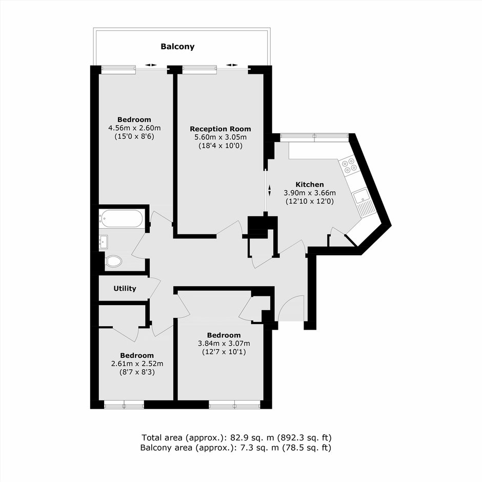 This bright and spacious three-bedroom apartment features a generous kitchen/dining room, sizeable lounge, a modern bathroom, and a private double balcony. The rent also includes heating and hot water.