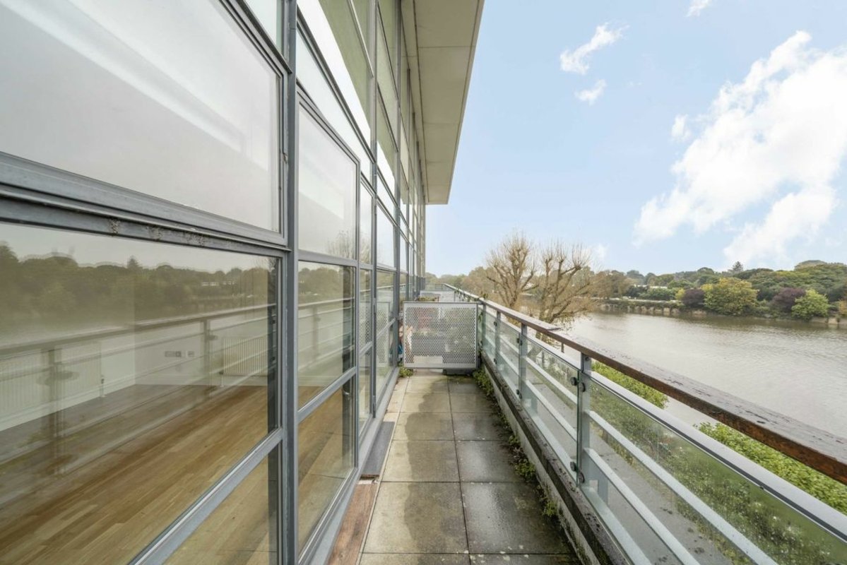 A two double bedroom apartment in a riverside development in Brentford with a large open plan reception room, a modern kitchen, wood flooring and a balcony overlooking the River Thames.