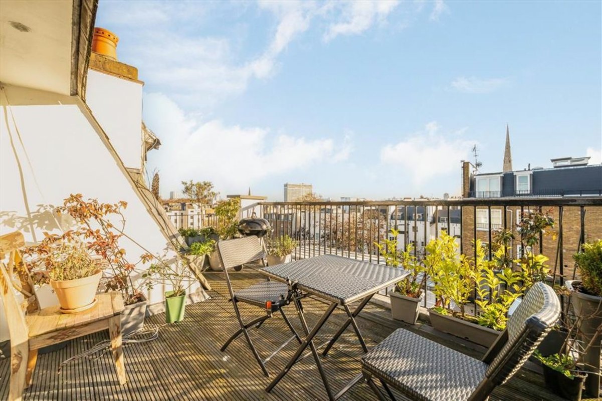 A top floor apartment with private roof terrace in the highly desirable Queens Gardens. The property includes includes a large double bedroom, modern bathroom and comes offered furnished.