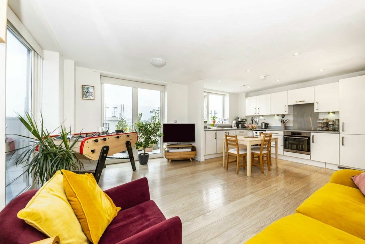 A well-proportioned, top floor one bedroom apartment. Offering an open plan reception room, modern fitted kitchen, great storage throughout and a private wrap around balcony with excellent views. Locked bike storage is available in the basement.