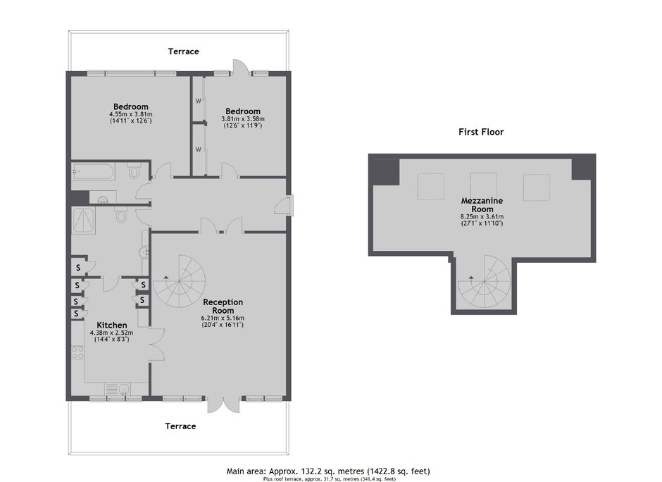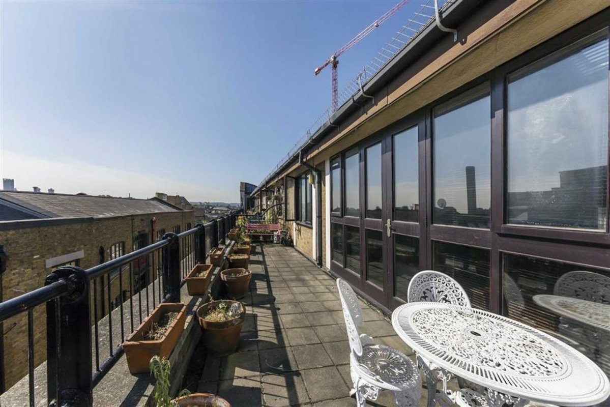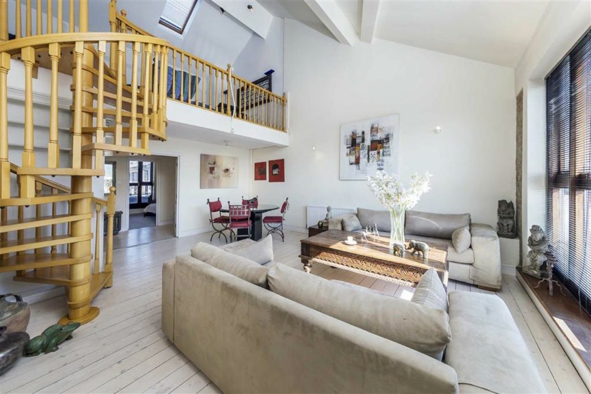 Split level warehouse conversion finished to a very high standard, fully furnished with solid wood flooring throughout. Comprises spacious living room with dining area, separate mezzanine living area and two double bedrooms.