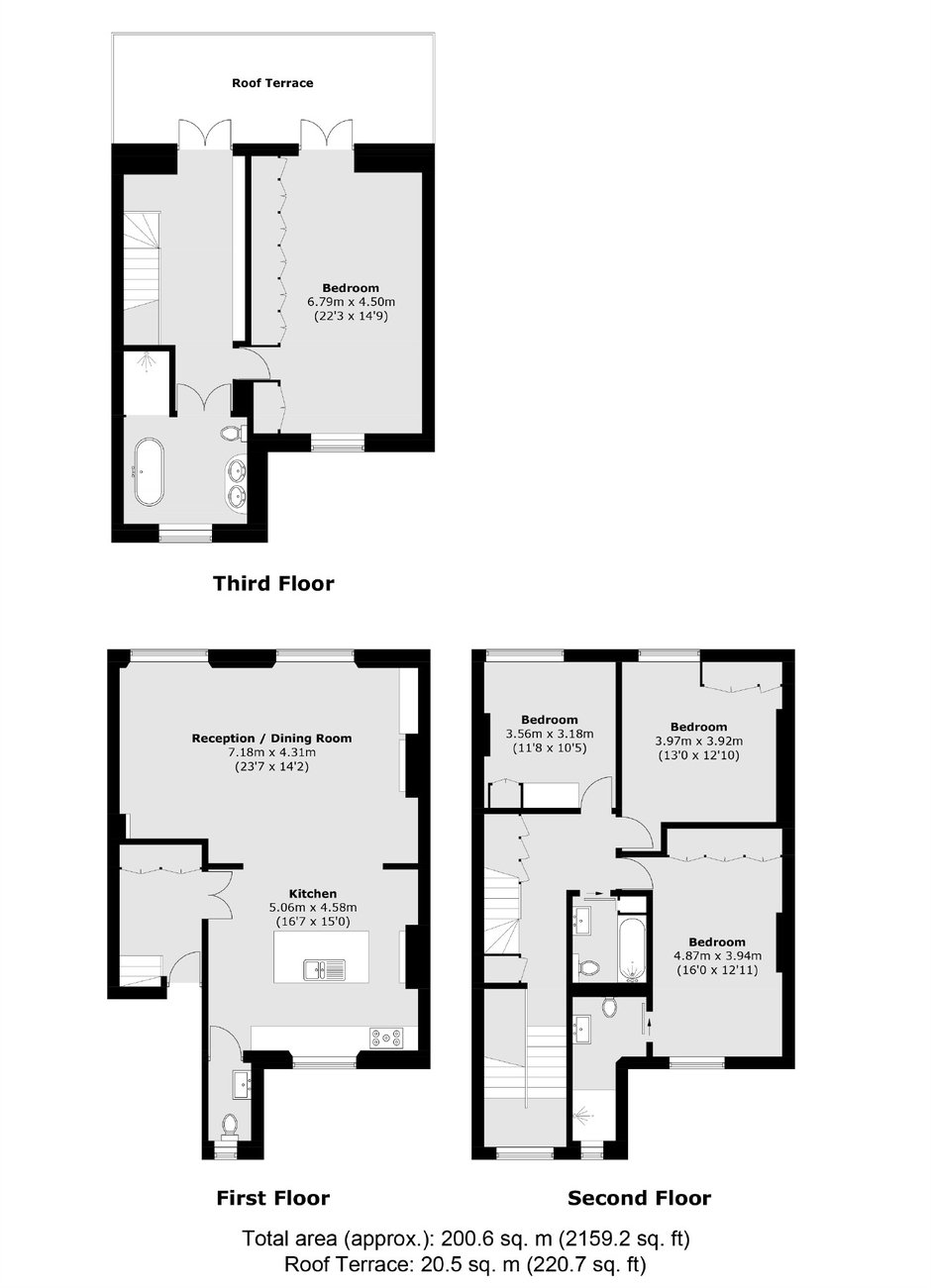 A stunning four double bedroom split level maisonette on the first, second and third floors of an attractive period conversion. This property is modernised throughout to a very high standard and benefits from four double bedrooms, three bathrooms, an impressive open plan double reception room with kitchen and a private south facing roof terrace.