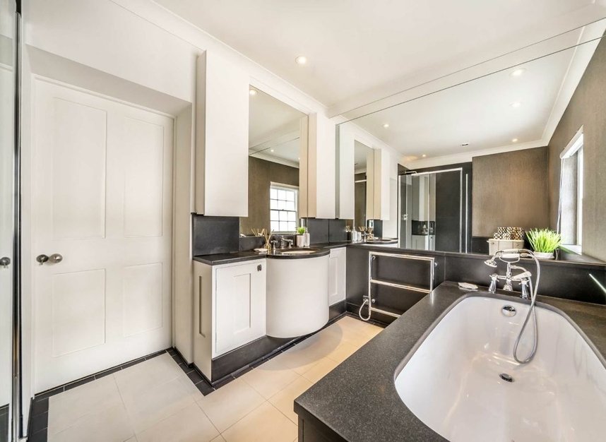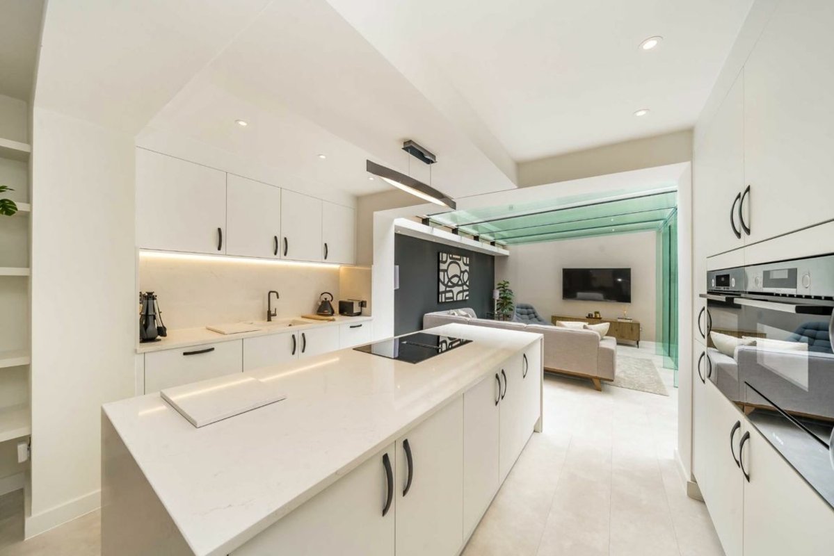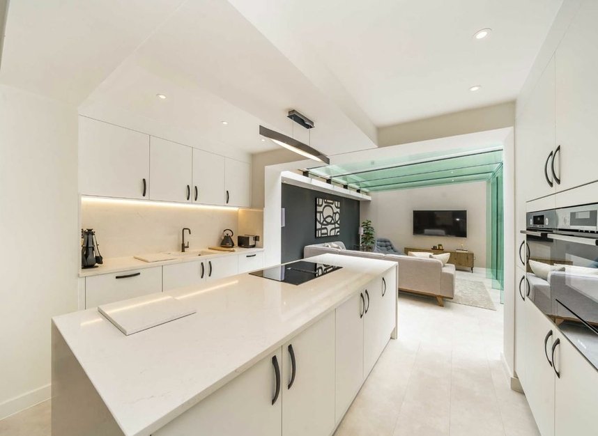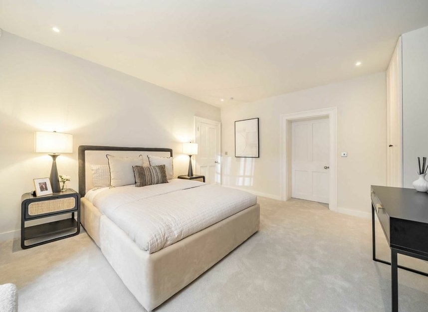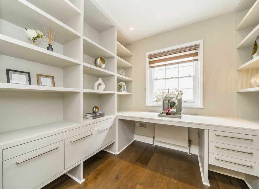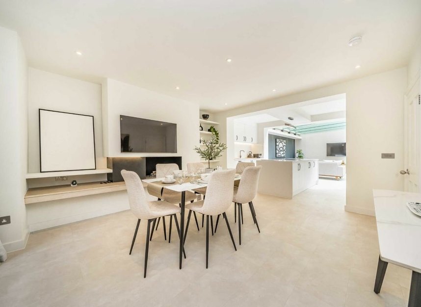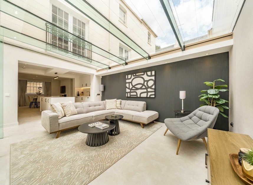 Arranged over three floors and spanning just over 2,400 sq ft, the house offers three bedrooms, three reception rooms, and versatile lower-ground living space. Elegant interiors open directly onto a large, mature private garden, providing a rare oasis in central London.