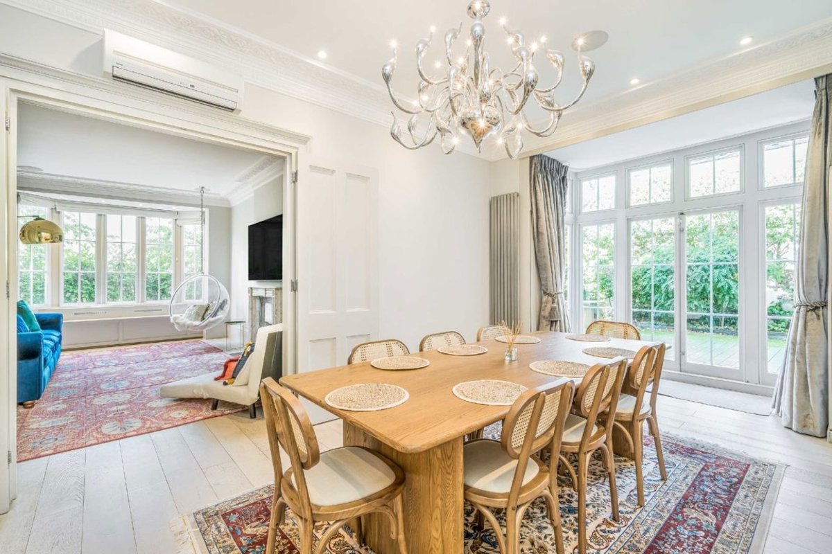 A delightful Grade II listed Nash villa, ideally situated just steps away from the expansive greenery of Regent's Park. This property features a beautiful, mature garden that surrounds three sides of the house.