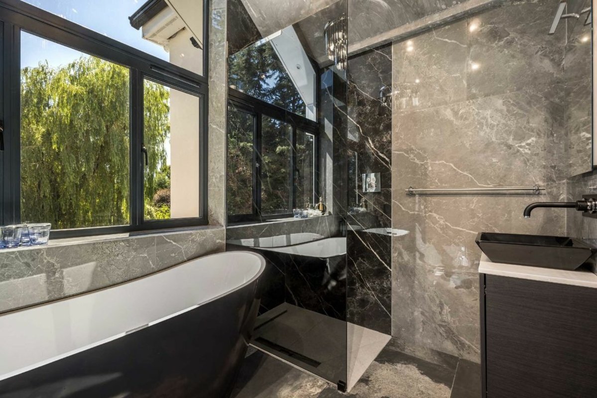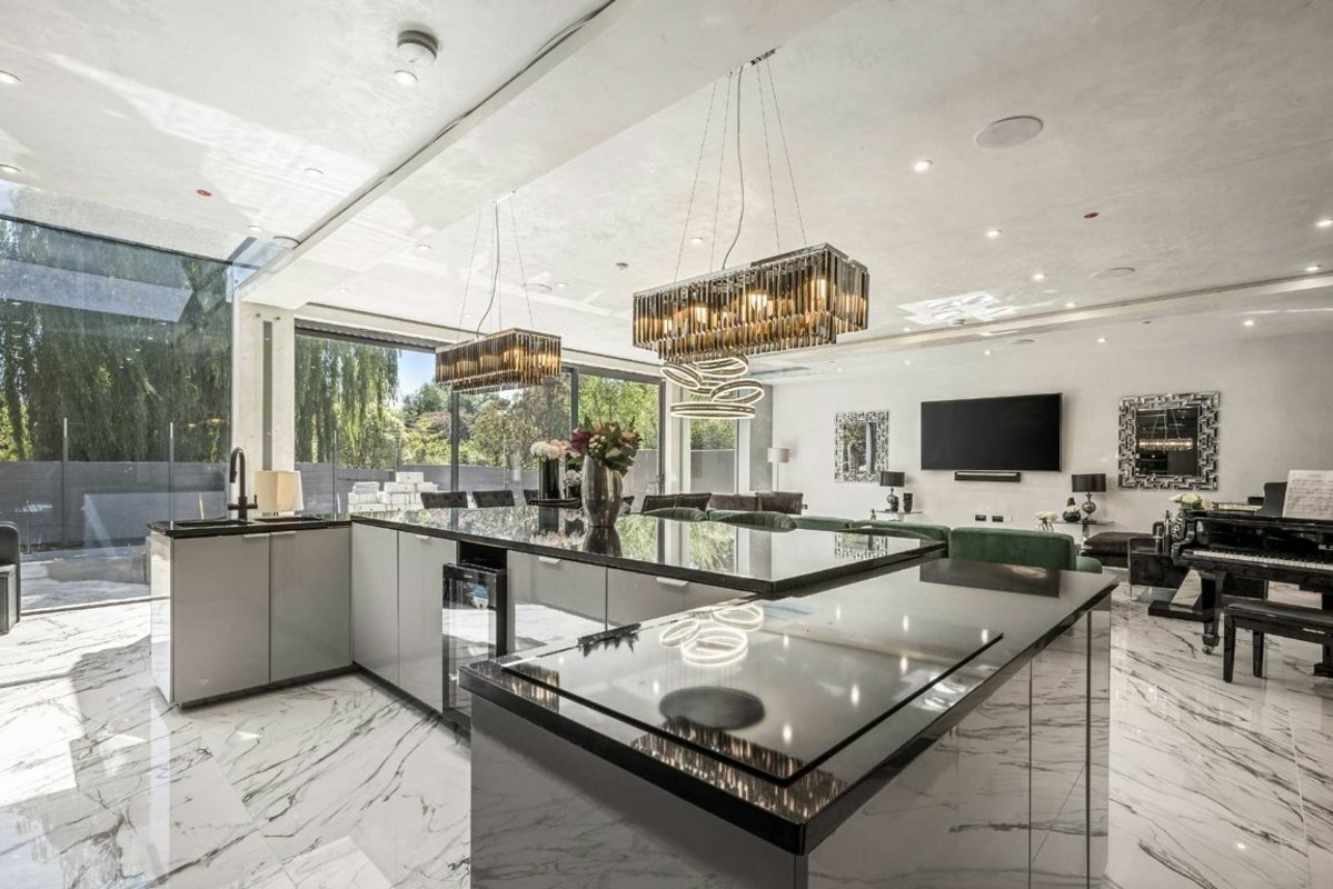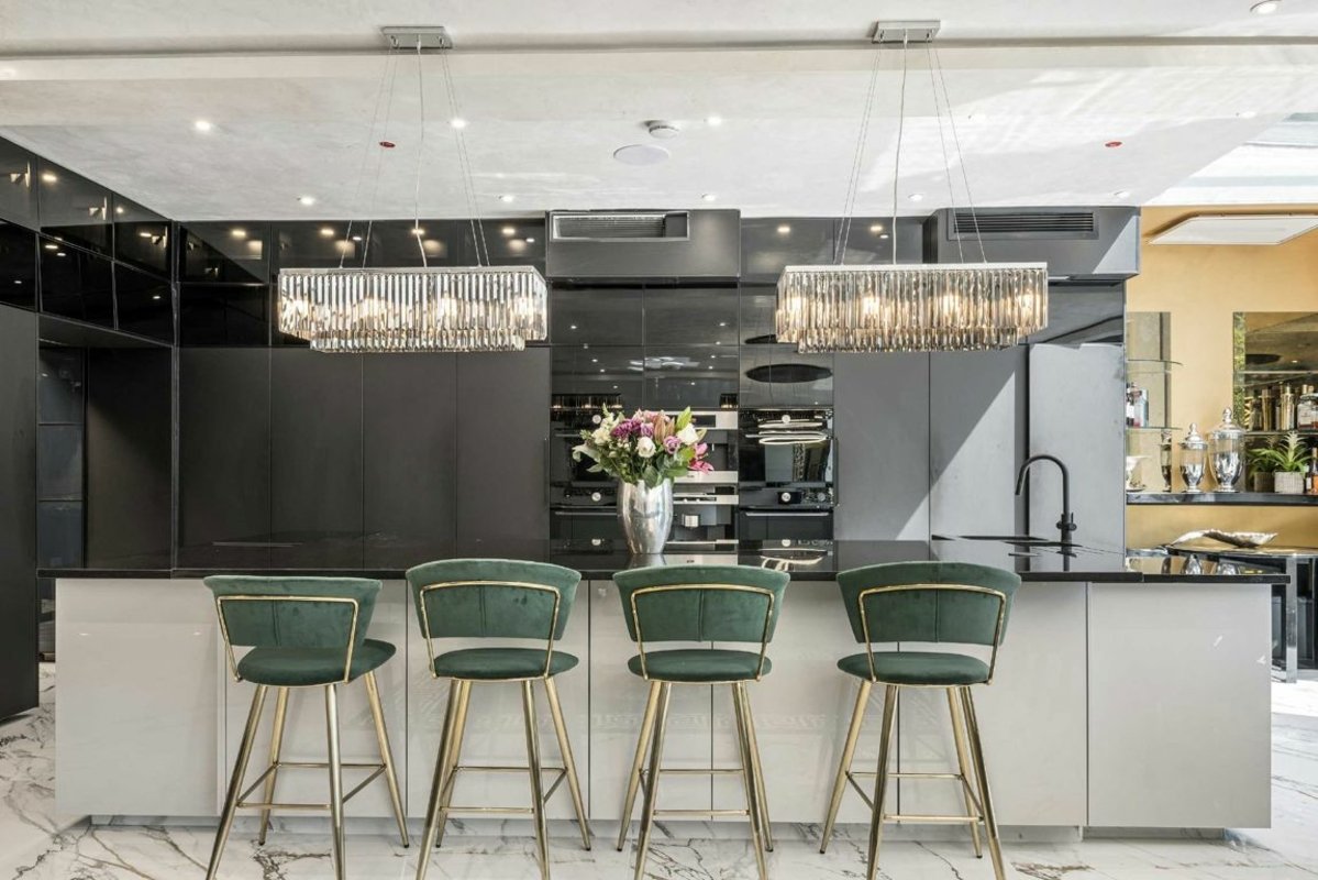 This striking modern family residence offers generous, beautifully arranged living space across three floors. The ground level opens into an impressive entrance hall leading to a spacious kitchen and living area designed for both everyday comfort and entertaining. The kitchen features high-quality integrated appliances, a central island and a useful adjoining utility room.