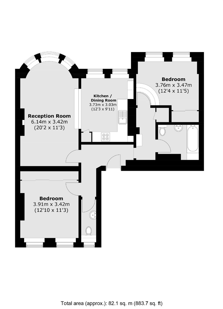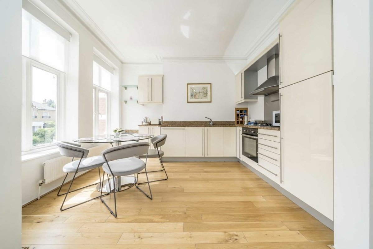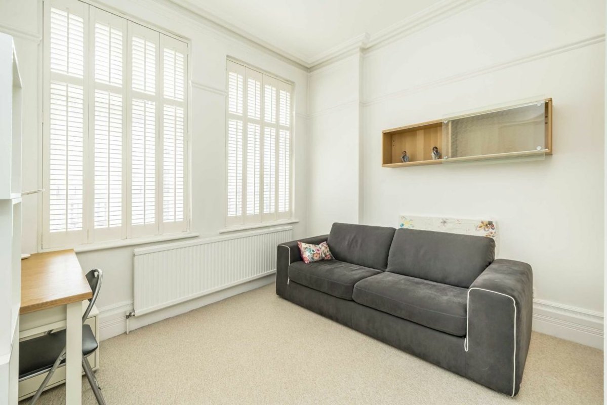Spacious two-bedroom apartment set within a well-maintained purpose-built block, offering approximately 900 sq ft of living space. This extremely bright property features high ceilings, a large reception room, separate kitchen, one bathroom, and an additional guest WC. There are communal gardens accessible at the back of the building.