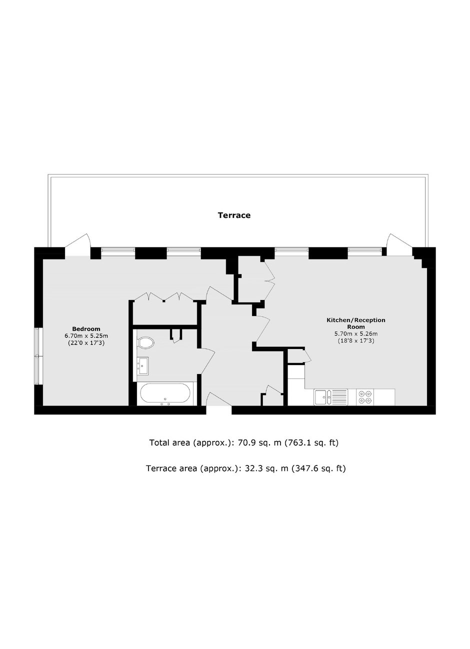 A beautifully presented one bedroom apartment set on the top floor of a modern block. The property has an open plan kitchen/reception room, a large bathroom and a private terrace with amazing views of Mill Hill.