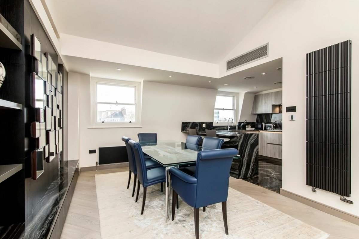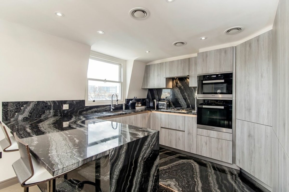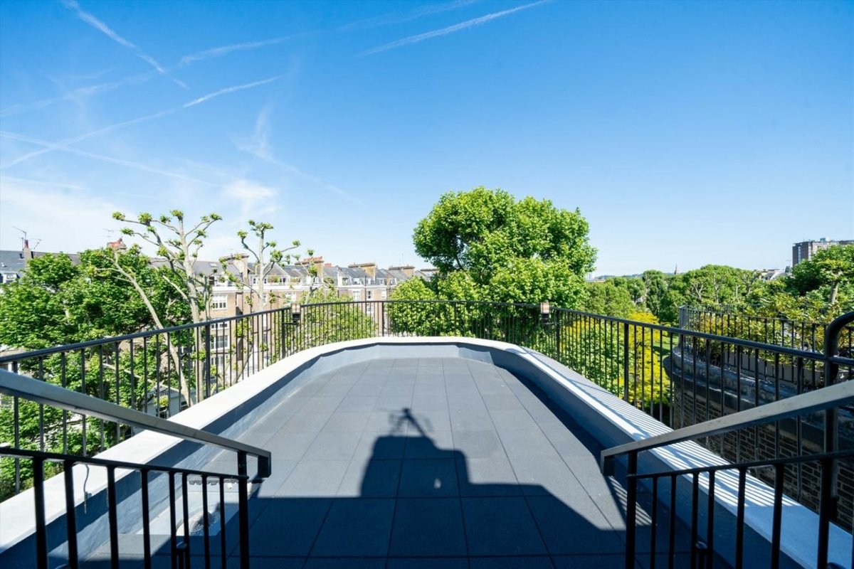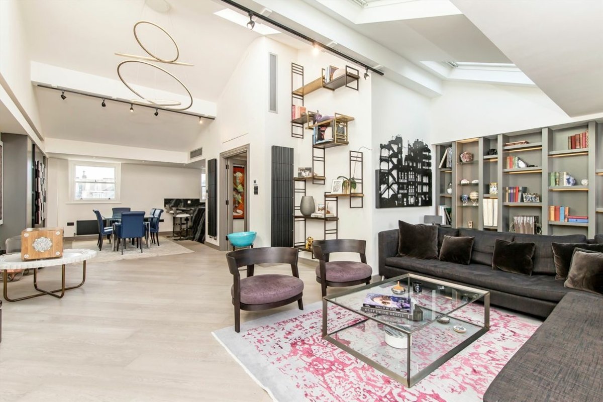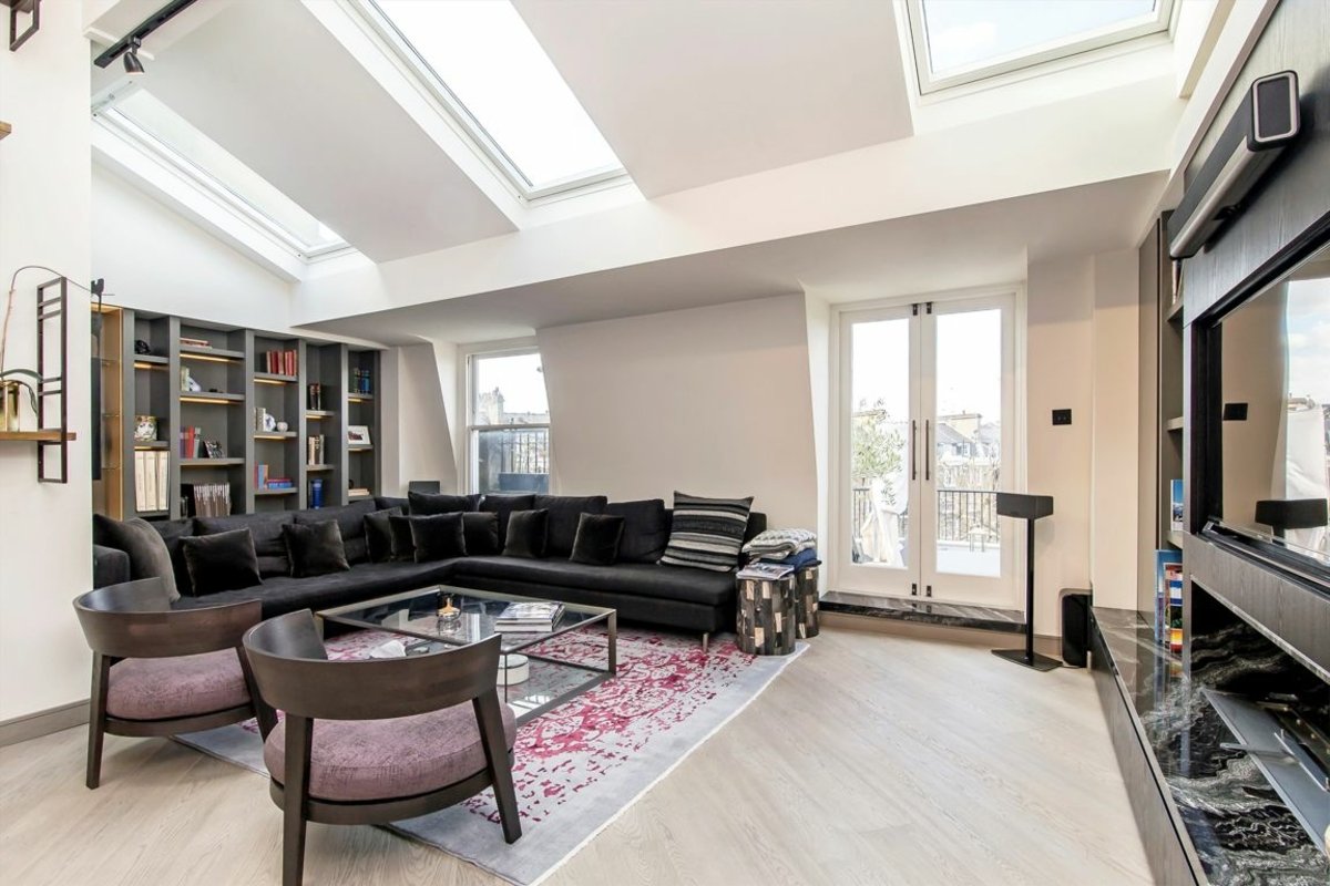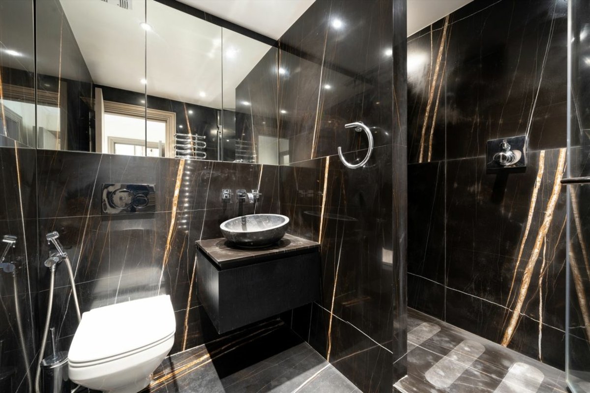 A stunning lateral penthouse set in a beautiful white stucco-fronted building. This well-presented property is in turnkey condition, and boasts high ceilings, an oval terrace, skylights throughout and a lift. It comes complete with three double bedrooms with built-in storage, three luxurious, black marble bathrooms and a sizable open plan kitchen/reception.