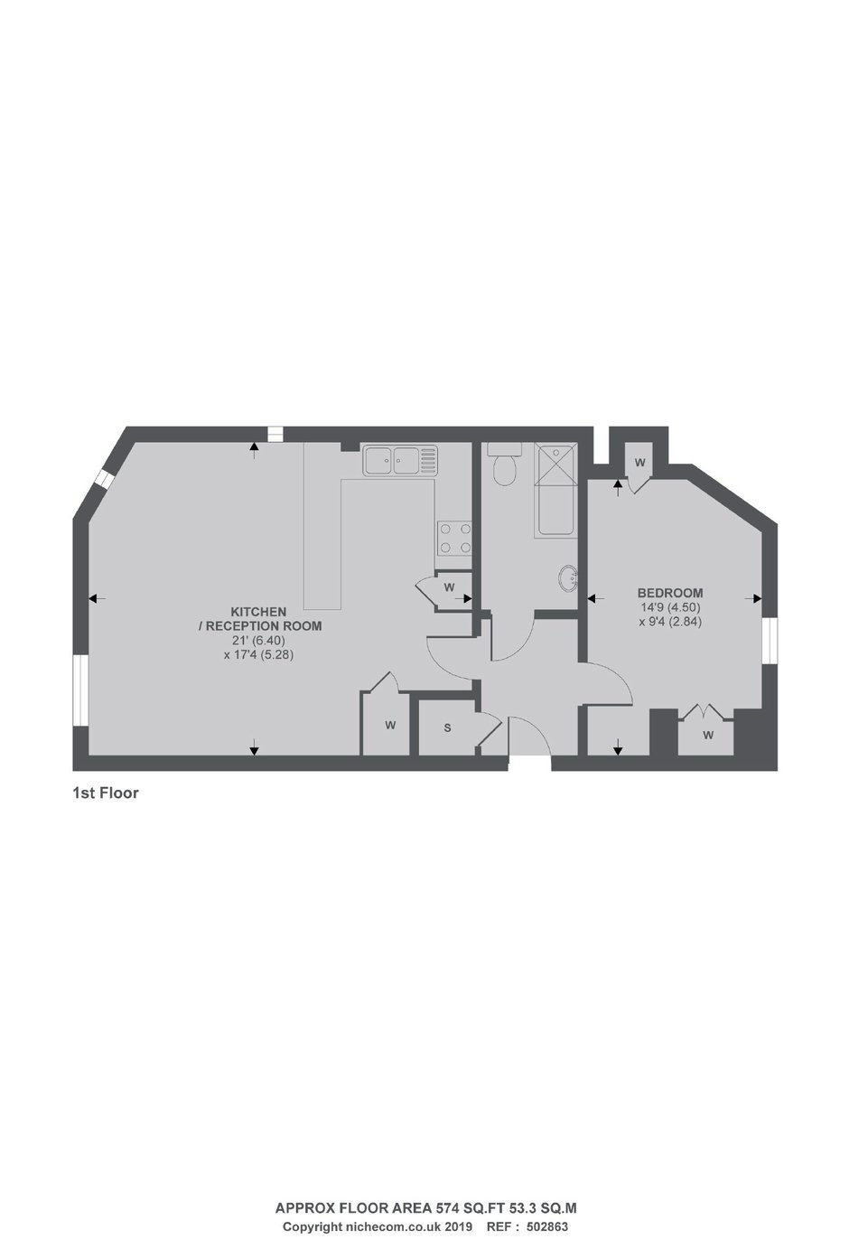 A first floor flat in a modern apartment building, with a lift and secure entry. With a spacious floor plan, an open plan kitchen and reception room and in built storage in the bedroom, this is an ideal first time purchase, pied a terre or investment.
