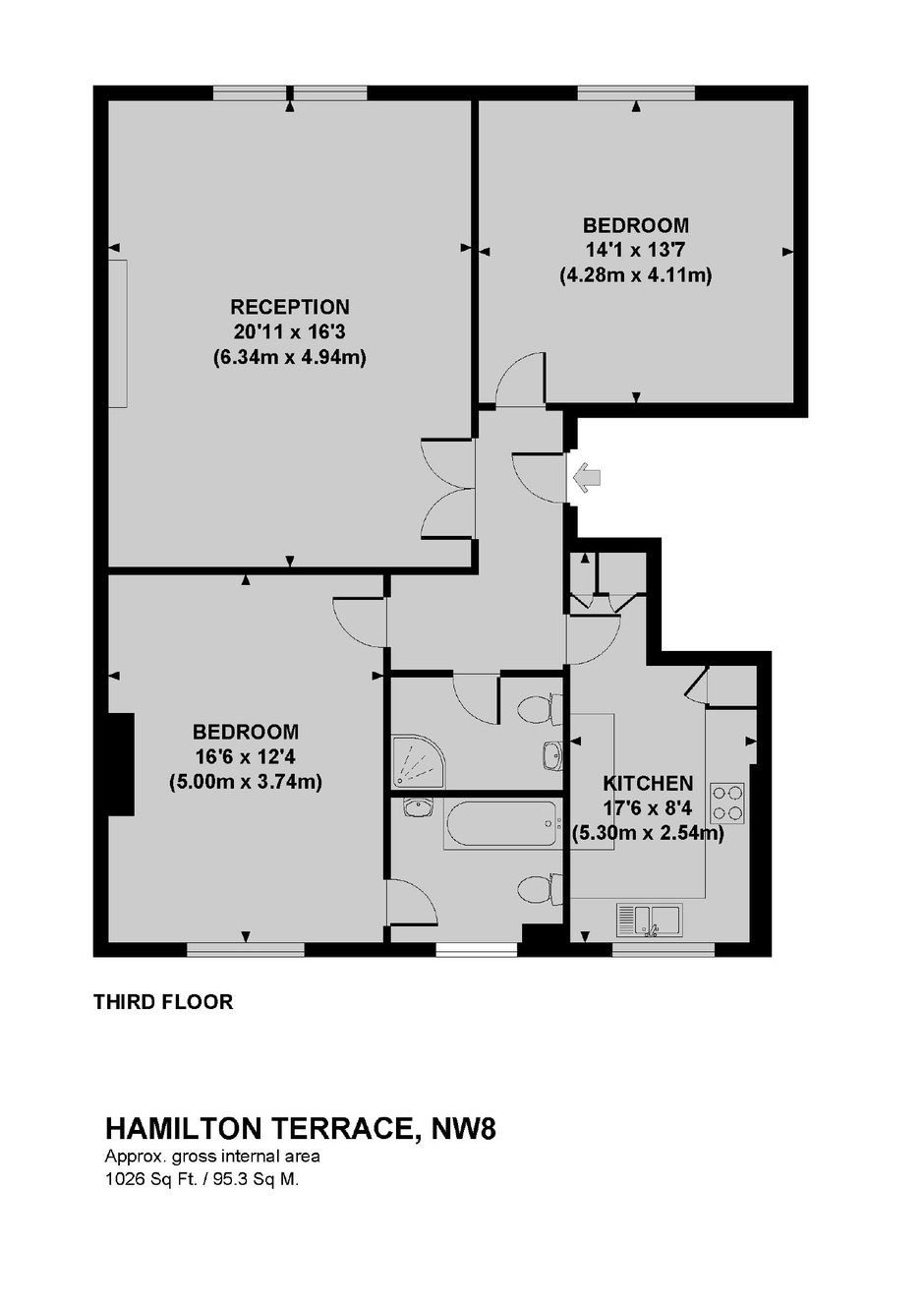 A modern two bedroom, two bathroom apartment on the third floor of a period conversion. Located on a popular residential street with a spacious reception room, separate kitchen, principal bedroom with en suite bathroom, second double bedroom and family bathroom.