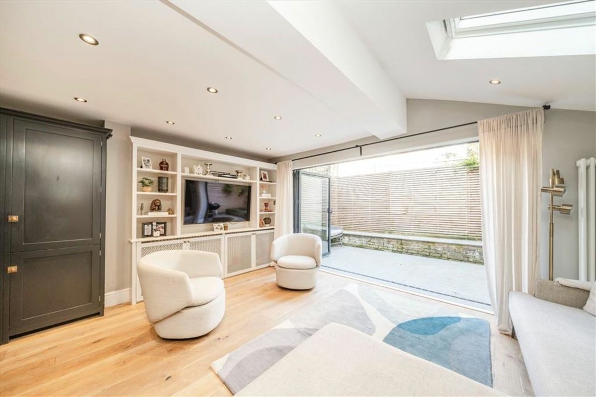 The property occupies the ground floor of a very pretty red brick terrace which has been converted into two flats. To the front of the property is the principal suite which has built in wardrobes and period style window shutters. The second bedroom, which is also a good size double benefits from an en suite shower room. Further down the hall is the main family bathroom. To the back of the property is a stunning open plan reception room not far off 30ft in length. There is a shaker style fully fitted kitchen with a range of appliances, marble worktops as well as a large feature island. The living area is by the sliding doors which provide access onto the patio garden.