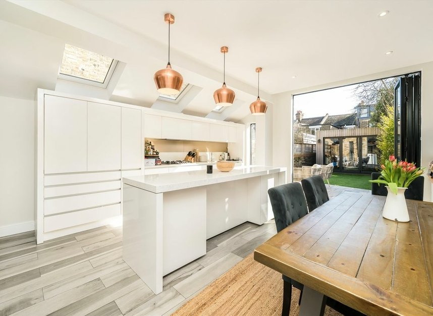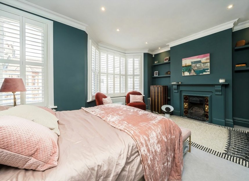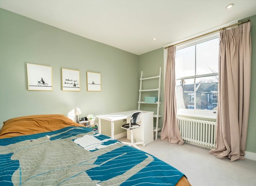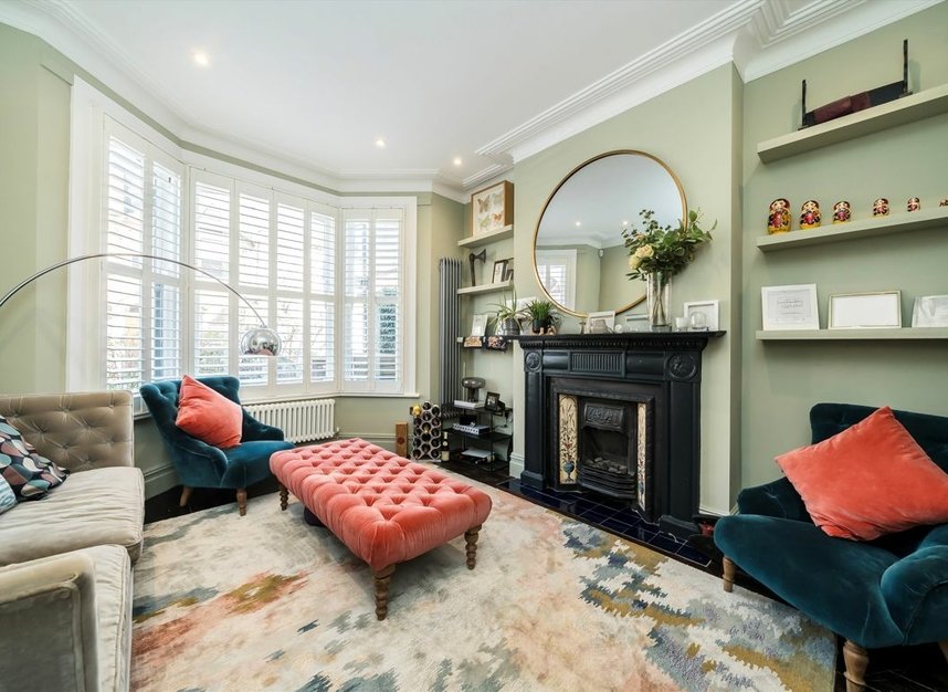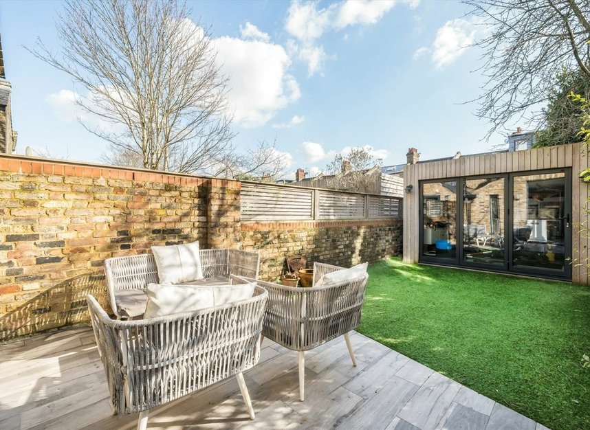 This charming mid-terraced Victorian family home is presented in excellent decorative order, offering versatile living space with four/five bedrooms and three bathrooms. The beautifully maintained south-facing private garden has a separate outbuilding perfect for use as a home office or studio.