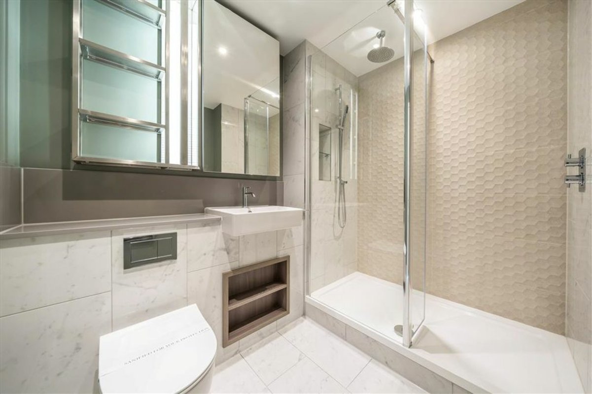 The ground floor features an open-plan kitchen diner with Bosch appliances and a convenient guest WC. On the first floor, you'll find a large reception room, a family bathroom, the third bedroom, and access to a private garden. The top floor comprises two double bedrooms, both with en-suite bathrooms.