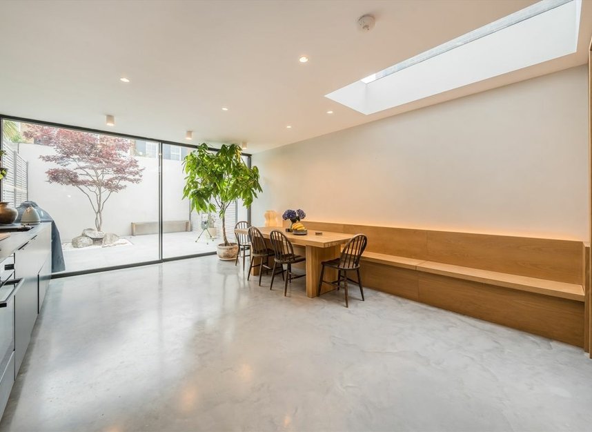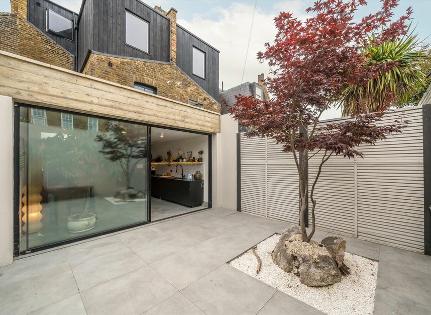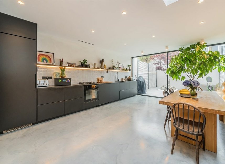 A four bedroom Victorian terrace that has been architecturally designed with high end finishes. The home offers over 1560 sq ft of interior living space with a side return and loft extension. Features include a private garden, polished concrete floors, bespoke cabinetry, double glazed sash windows & timber clad extension.