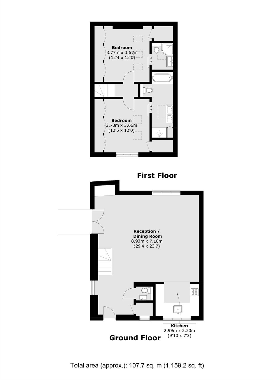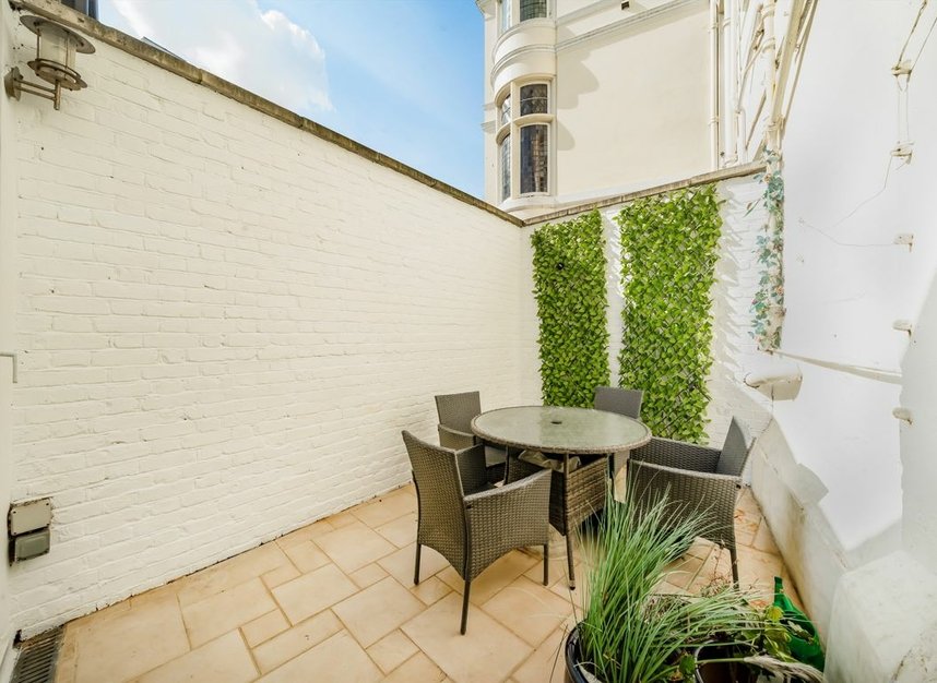 The property has two bedrooms, two bathrooms, a spacious 29ft reception/dining room, off-street parking and a delightful patio garden.