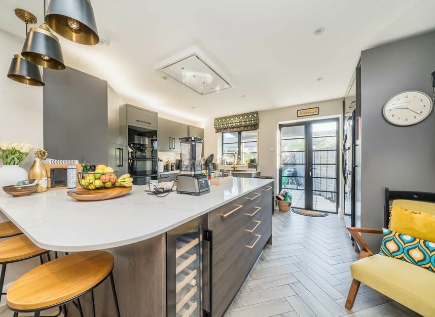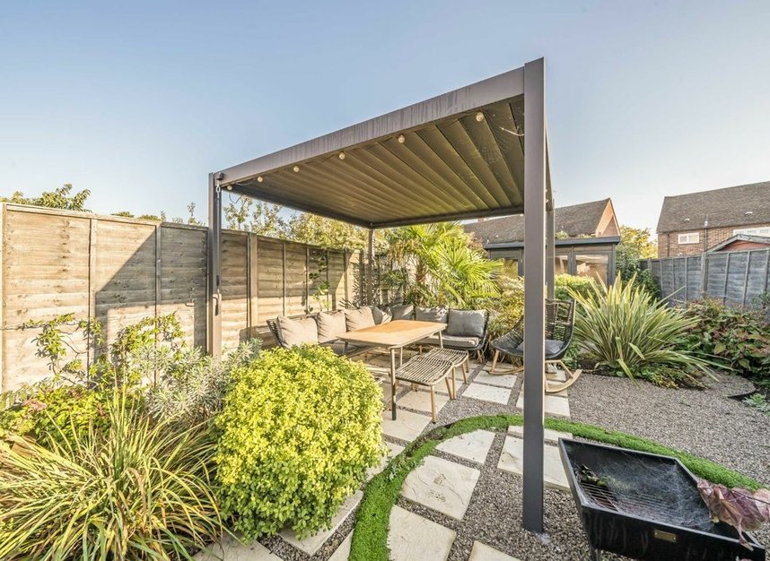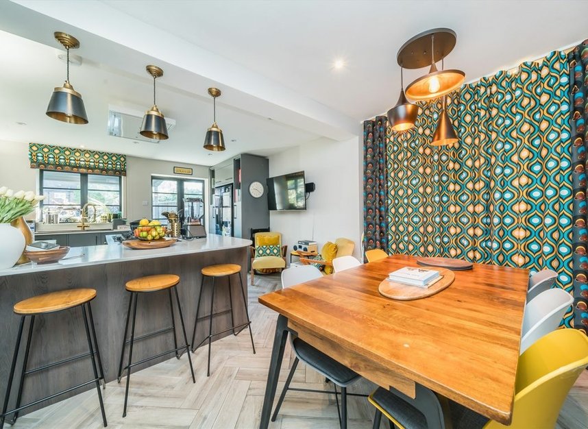 A stylish four bedroom house with bold interiors, featuring a stunning open-plan kitchen/dining space, separate reception, landscaped garden with pergola, garden room and off street parking.