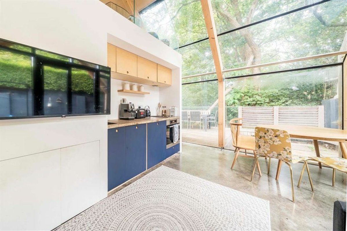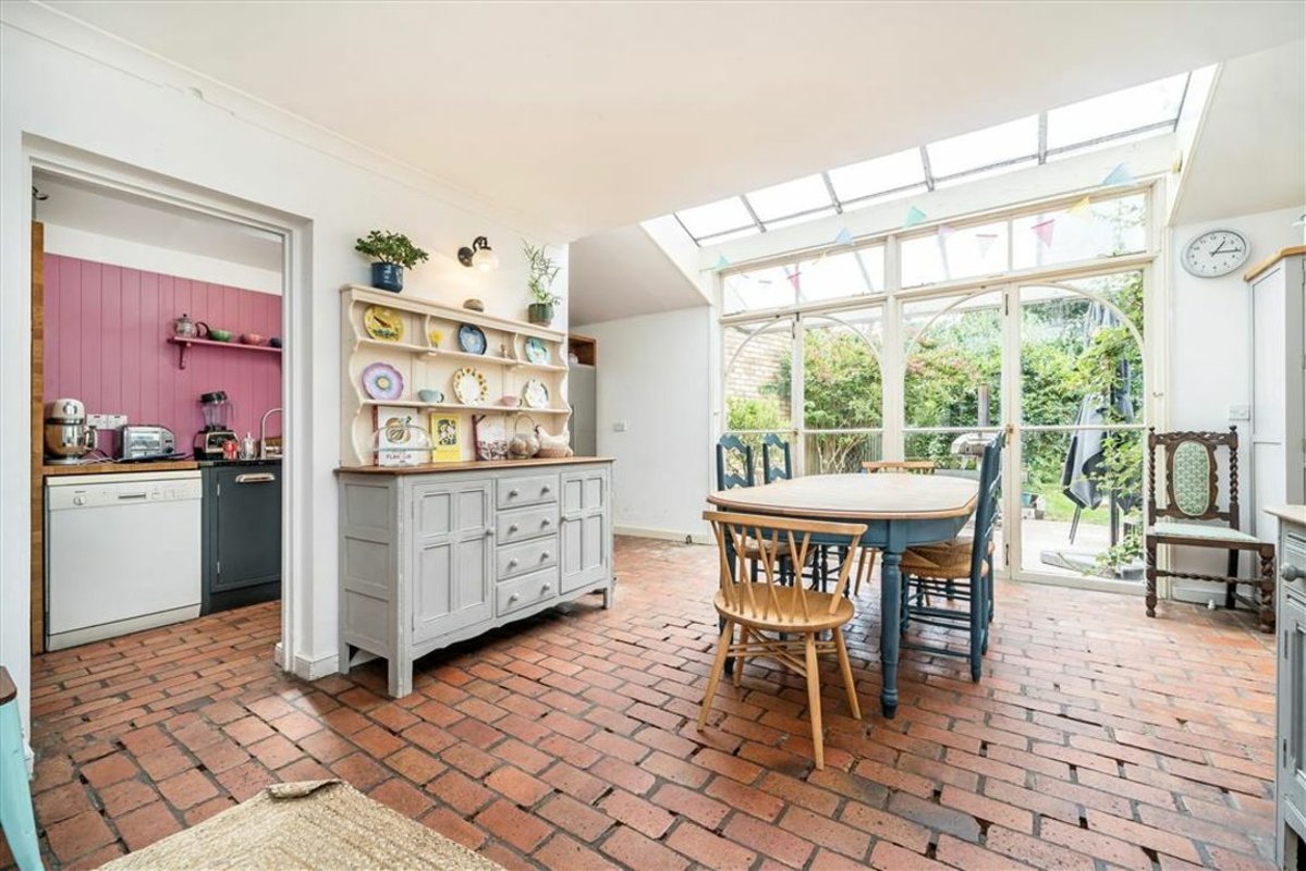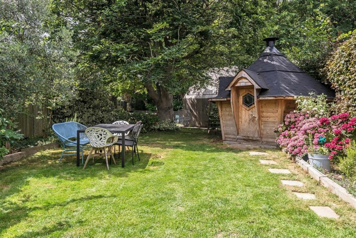 This spacious house with 5 beds and 4 baths also has a separate granny (or young adult) annexe, with 2 beds and 1 bath, together creating the rarely-found opportunity for independent multi-generational living. Understated from the front, the corner plot fans out with well-over 2500 square feet of accommodation within fabulous, substantial grounds leading to views over Westcombe Woods. Beautiful and well-proportioned in its current configuration, the owners also secured planning to extend and amend (pre-covid permission, so will need refreshing).
