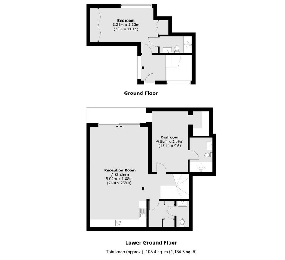 Pink Mews combines Victorian architecture and elegant contemporary interiors. Benefitting from its own private entrance, this duplex apartment offers open plan living with stunning double height ceilings, fully equipped kitchen with Miele appliances and luxury bedroom suites. The Principle bedroom is located on the ground level with built in storage and en-suite bathroom. A further bedroom, bathroom and outside space are located on the lower ground level. The development is situated beyond private gates with daytime concierge.