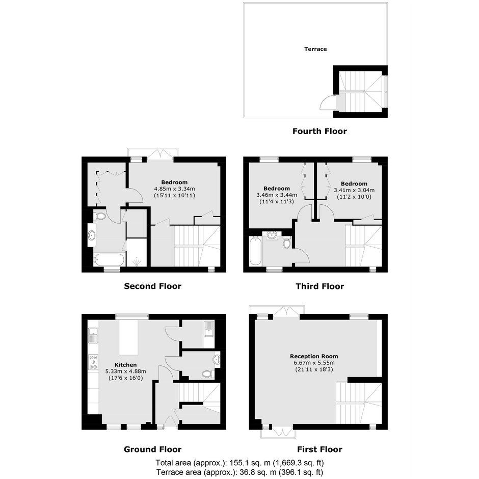 A very rarely available four storey, freehold town house, built in 2021, with a large eat in kitchen on the ground floor, a full width living room on the first floor, three generous double bedrooms, two bathrooms and an additional WC, plus air-conditioning on every floor, a stunning private roof terrace with far reaching skyline views.