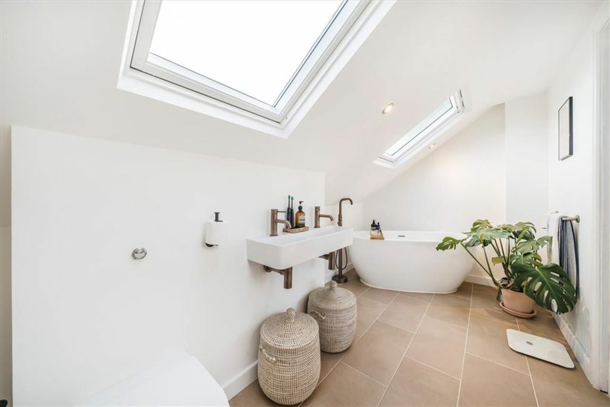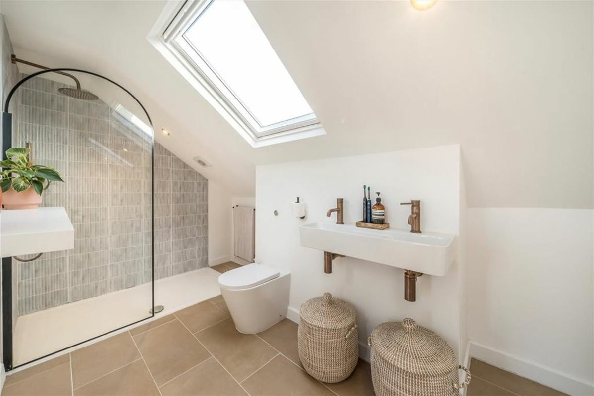 The first floor hosts three well-proportioned bedrooms and a modern family bathroom. The loft has been skilfully converted to create a generous main bedroom suite, benefitting from exceptional space and a luxury spa-style ensuite with both a separate bath and walk-in shower.