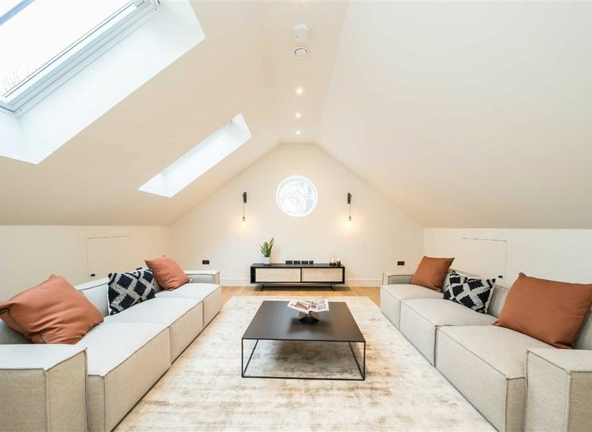 A further reception room with a valuated ceiling and a shower room reside on the first floor, the former could easily be used as a fourth bedroom.