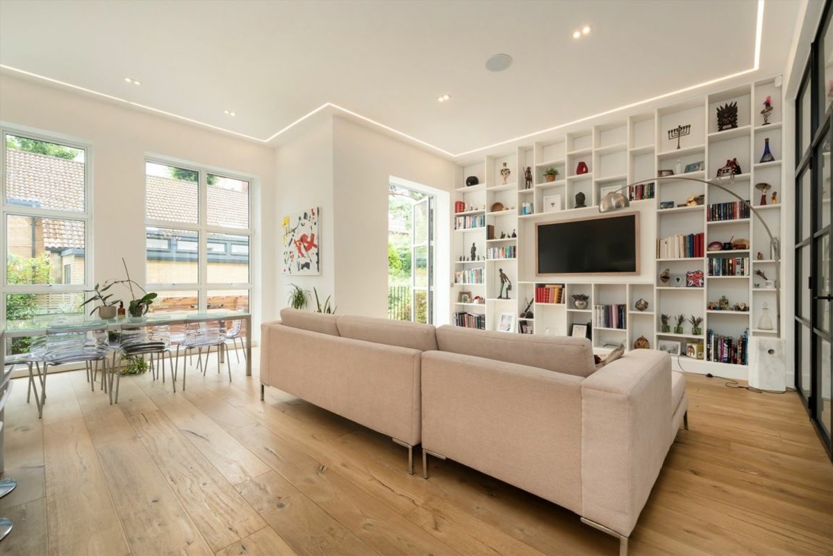 Set across multiple levels, the property offers expansive and versatile living space. The raised ground floor boasts a beautifully appointed, high-specification kitchen and dining area, alongside a refined reception room perfect for both everyday living and sophisticated entertaining.