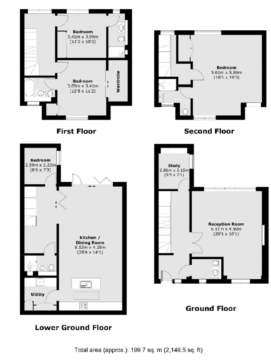 A modern four bedroom, four bathroom house arranged over four floors with a private terrace and off-street parking. This property is being offered with a long lease.